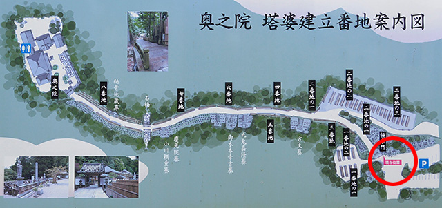 明星堂をさらに先へ行くと奥之院の入り口極楽門(下図で丸で囲ったところ)がそびえています。しかし、奥之院まではかなり時間がかかりそうです。残る時間はあと15分。もうバス停に戻らなければいけません。今回は、泣く泣く諦めました。