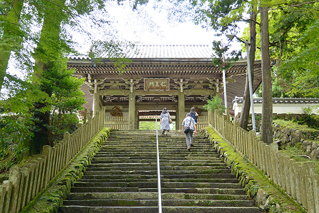 バス停から見えた門を入ってから左に曲がり、少し歩いて右へ曲がると仁王門がそびえています。